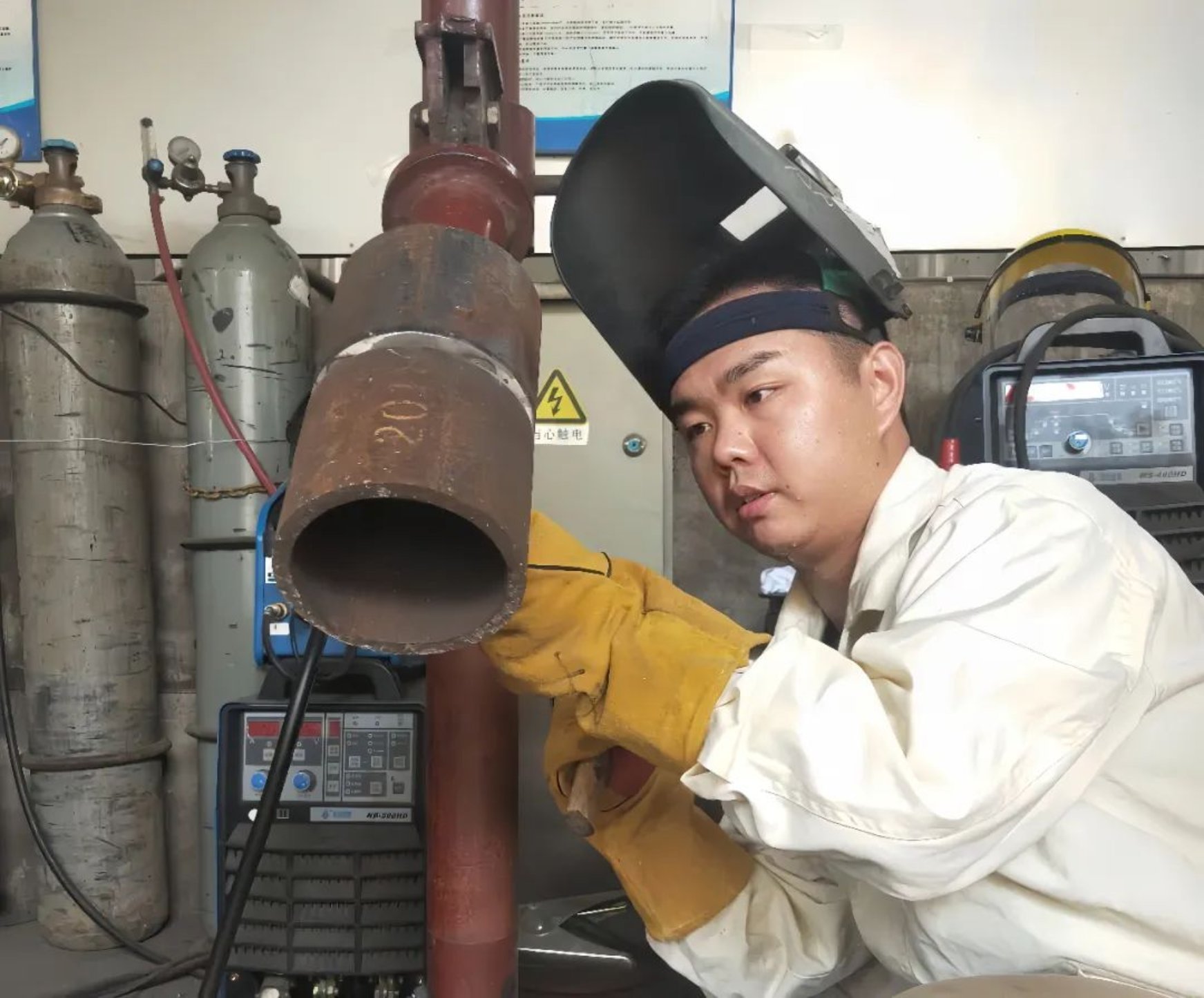 2014年,羅賢加入公司的焊接集訓(xùn)隊(duì),備戰(zhàn)各級職業(yè)技能大賽。為練就單面焊雙面成型、薄板焊接等技能,他平均每天都要焊上10塊鋼板。在日復(fù)一日的訓(xùn)練和生產(chǎn)一線的操作中,他逐漸掌握了焊條電弧焊、鎢極氬弧焊、二氧化碳?xì)怏w保護(hù)焊、埋弧自動焊等多種焊接方法。