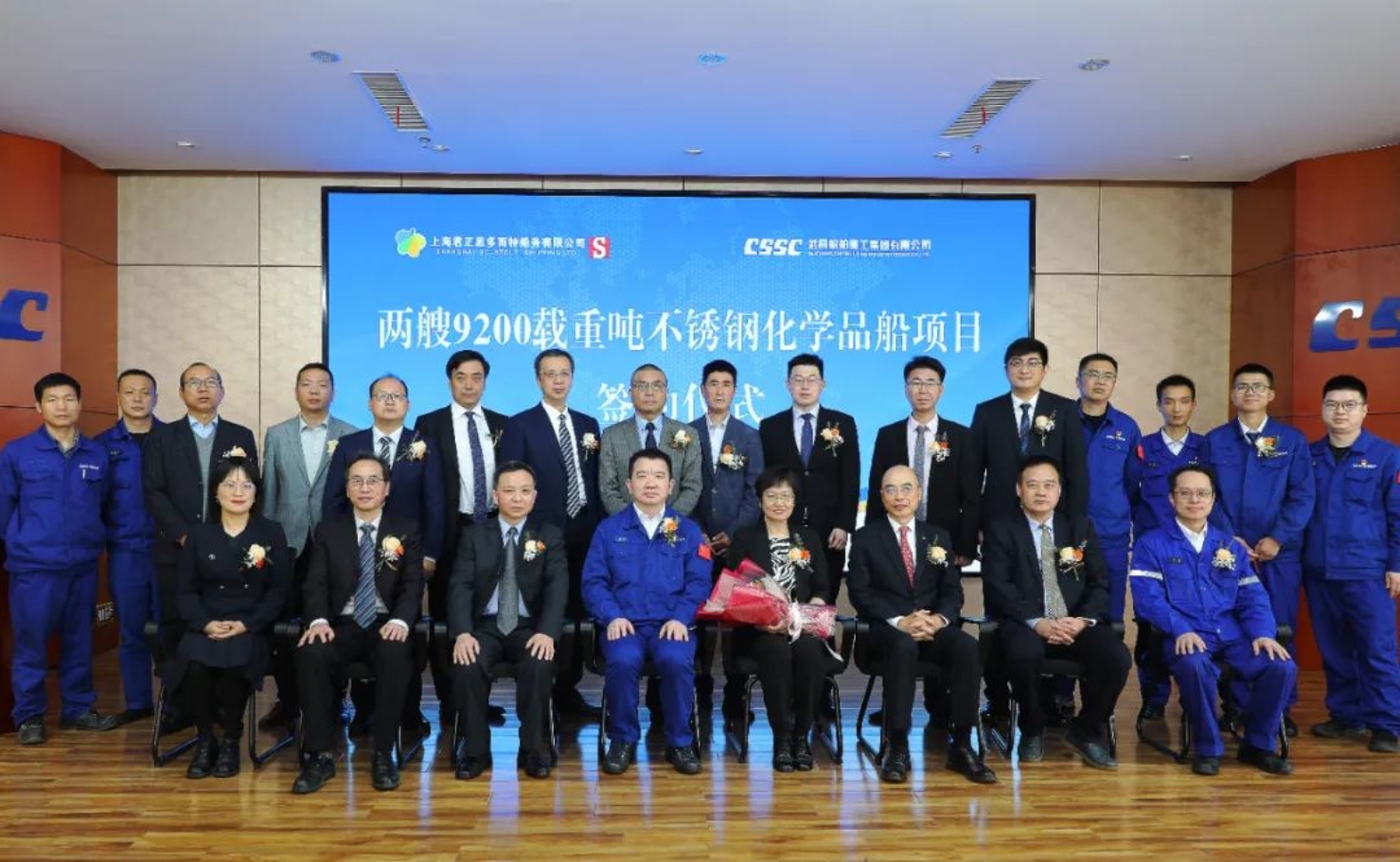 3月30日上午,中國船舶集團武昌造船與上海君正思多而特船務有限公司簽訂兩艘9200載重噸不銹鋼化學品船項目建造合同,簽約儀式在公司雙柳廠區(qū)舉行,上海君正思多而特船務有限公司董事長司良女士、公司經(jīng)營部部長李濤先生代表雙方在建造合同上簽字。