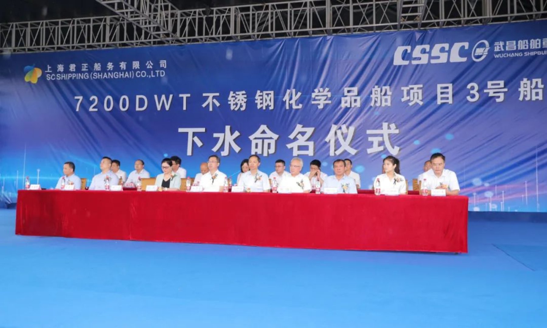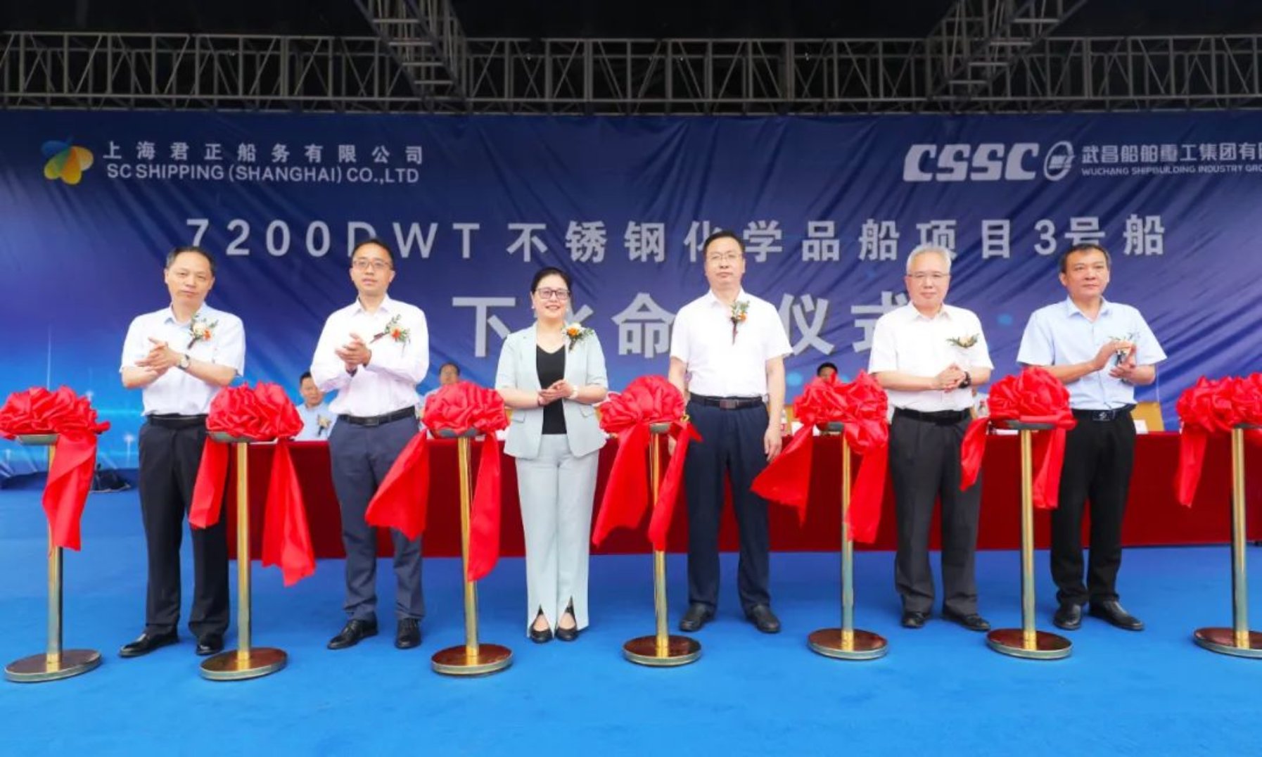 7月20日上午,在喜悅的鑼鼓聲中,由中國船舶集團(tuán)武昌造船為上海君正船務(wù)有限公司建造的第三艘7200DWT不銹鋼化學(xué)品船“月丹”輪在雙柳廠區(qū)順利下水!上海君正物流常務(wù)副總經(jīng)理吳貴榮,武昌造船黨委副書記、總經(jīng)理梁師清,中國船級社副總裁范強,中海殼牌石油化工有限公司供應(yīng)鏈總監(jiān)陳鵬,上海船舶研究設(shè)計院副院長周志勇等相關(guān)領(lǐng)導(dǎo)出席儀式并剪彩。
