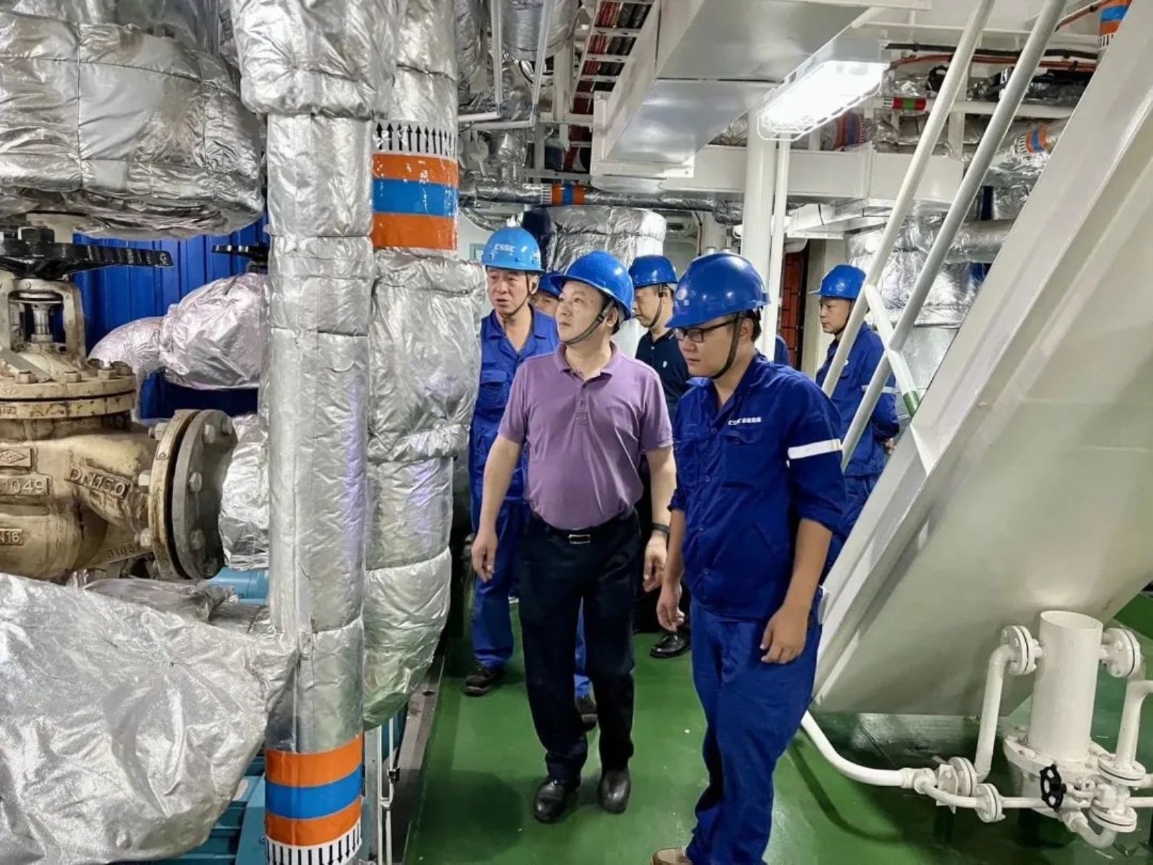 在交船隊項目現(xiàn)場,田軍登上在制船舶,詳細(xì)檢查每艘待交付船舶的在泊狀態(tài),并與各項目負(fù)責(zé)人進行交流,了解船舶計劃周期完成率等情況,對安全、質(zhì)量等方面提出具體要求,對船舶交付前的部分內(nèi)裝細(xì)節(jié)提出優(yōu)化改造建議,確保向船東交付精品船舶。田軍還通過電話形式,向在寧波的6000噸產(chǎn)品項目組了解產(chǎn)品建造進度,對建造人員表示親切慰問。
