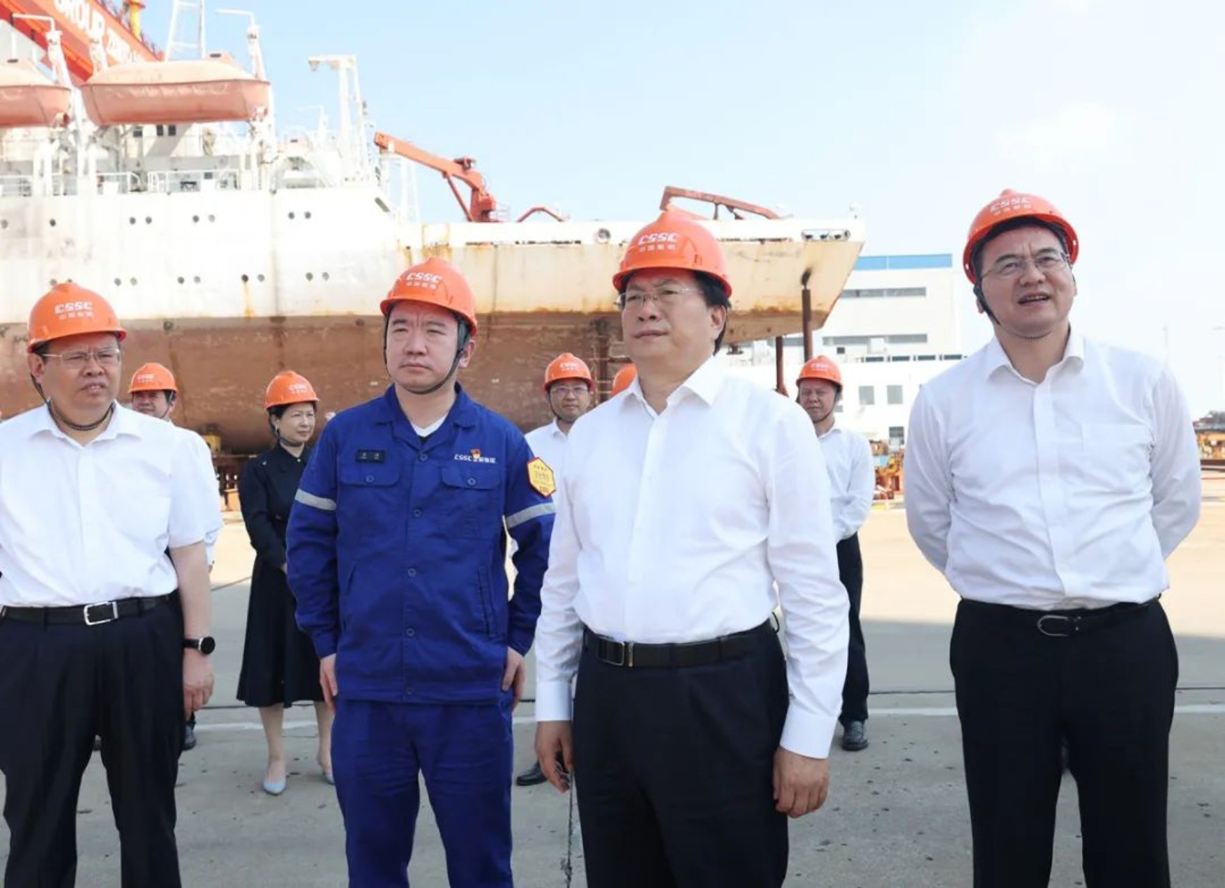 副省長盛閱春,武漢市市長程用文,武昌造船黨委書記、董事長姜濤,黨委委員、總會計師陳仲明陪同調(diào)研。