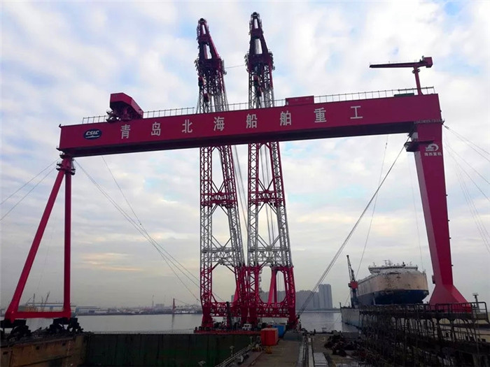 近日,武船集團(tuán)北船重工1號修船塢原南塢墻拆除結(jié)束,原船塢與加長段順利實(shí)現(xiàn)打通,并迎來船塢加長貫通至430米后的首艘進(jìn)塢修理船舶。與此同時(shí),船塢配套500噸龍門起重機(jī)于9月20日安全順利的完成整體吊裝,至此1號修船塢升級改造項(xiàng)目兩大關(guān)鍵重要節(jié)點(diǎn)同期完成。