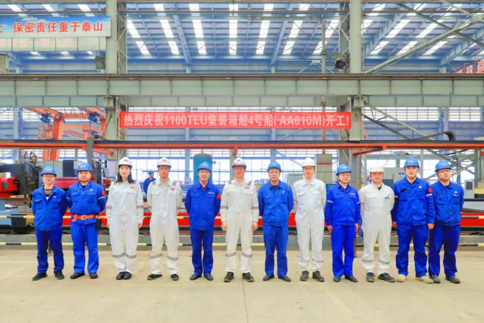 4月7日上午11時18分,武昌造船為CA Shipping建造的1100TEU集裝箱船4號船在雙柳廠區(qū)順利開工。該船順利開工標志該批一型四艘1100TEU集裝箱船系列船項目全部從前期策劃階段正式轉入船舶建造階段。船東代表、哥倫比亞船舶管理公司、NK船級社相關領導以及公司相關部門代表、產品三總師參加開工儀式。