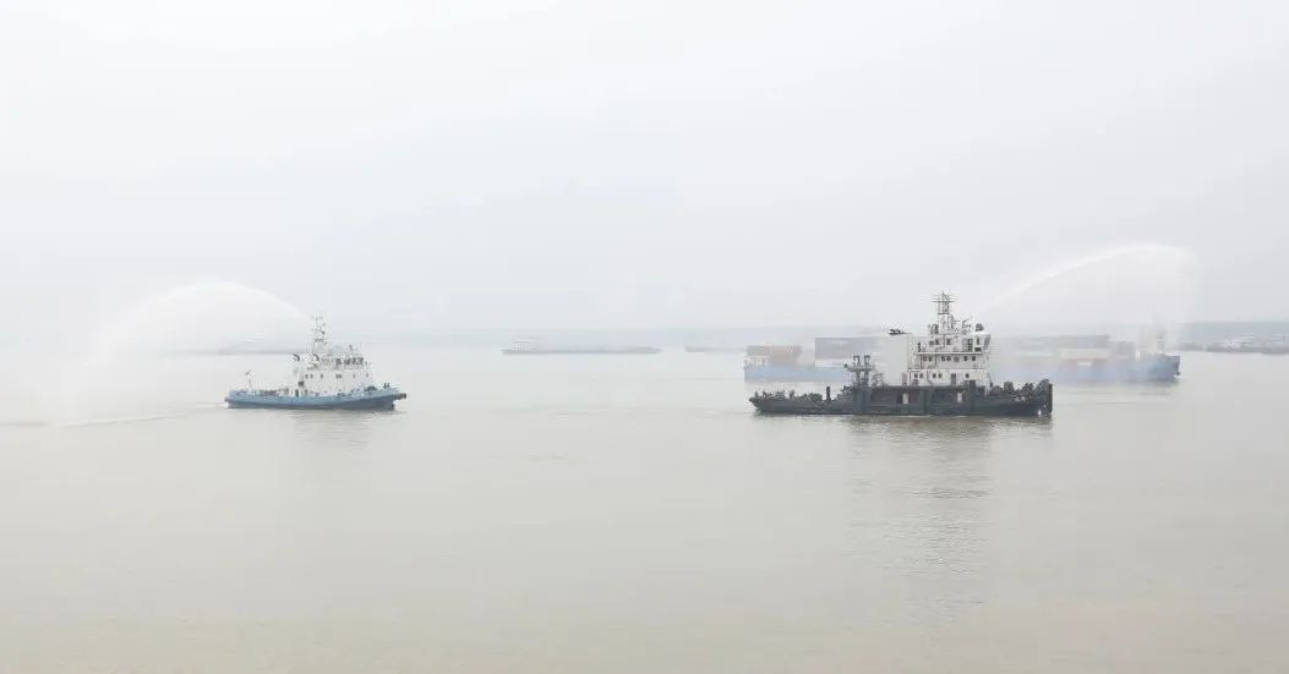 武昌造船拖輪進(jìn)行江上表演,向家屬們致以最高禮節(jié)