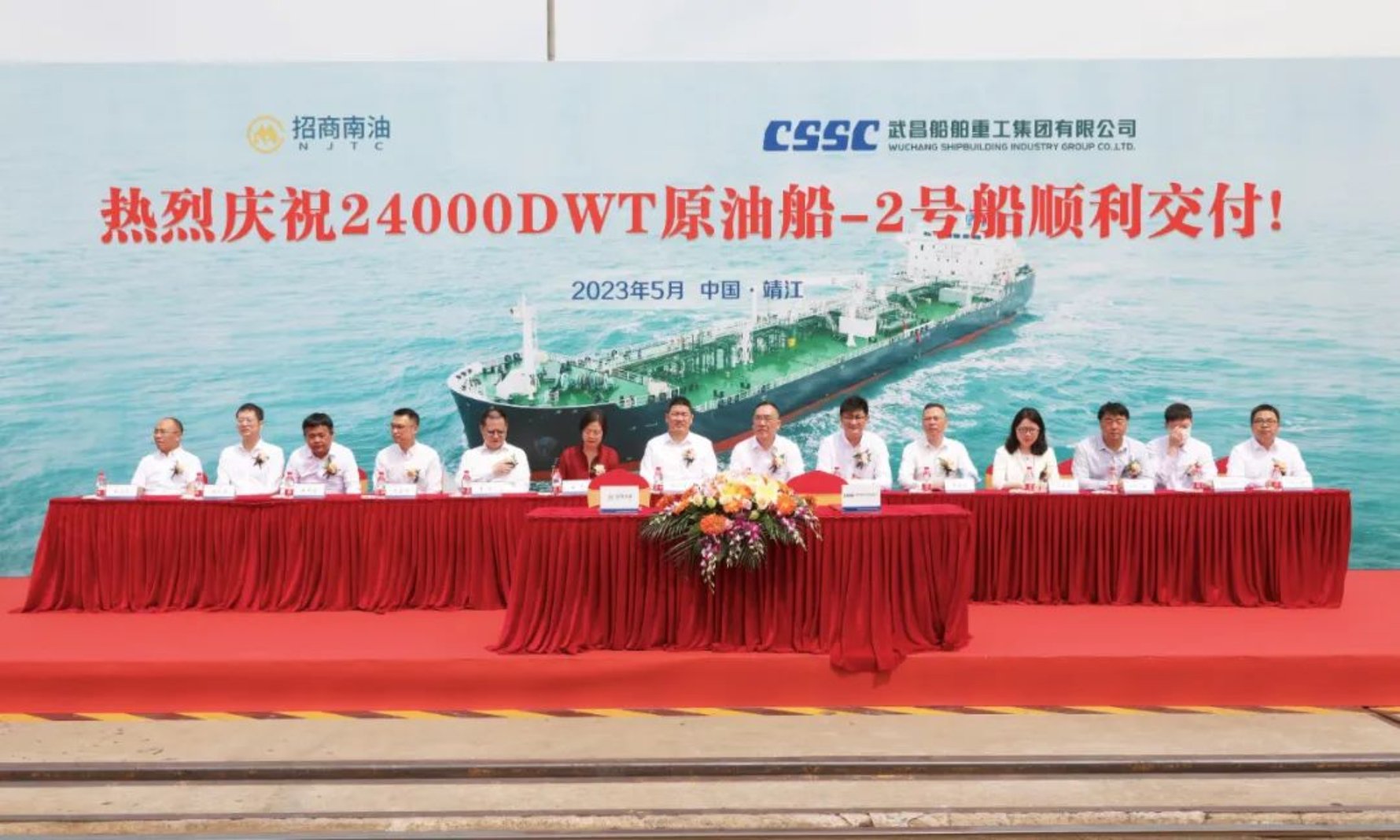5月16日上午,由中國船舶集團武昌造船為招商南油建造的24000DWT原油船“長祥洲”輪舉行命名和交付儀式。