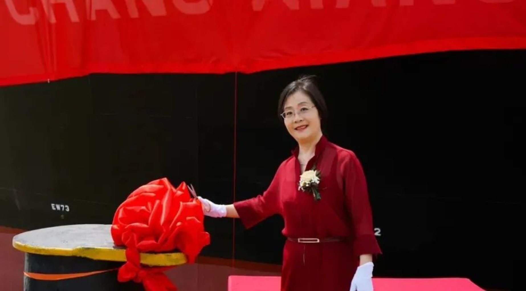 ▲招商局南京油運股份有限公司徐萍女士擔任新船教母,將其正式命名為“長祥洲”輪,并為新船剪纜