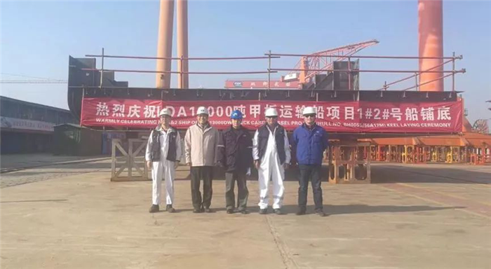 由武船集團(tuán)海工院總包,雙柳武船承建的新13000噸甲板運(yùn)輸船,按照原定計(jì)劃節(jié)點(diǎn)于2018年12月18日上午10時(shí)18分在雙柳船臺(tái)成功舉辦1#2#船鋪底儀式。