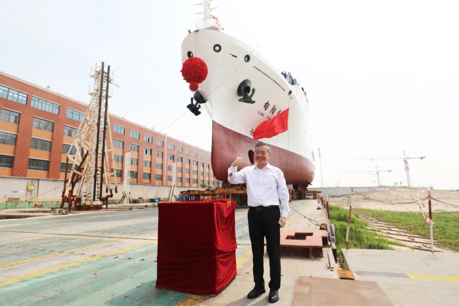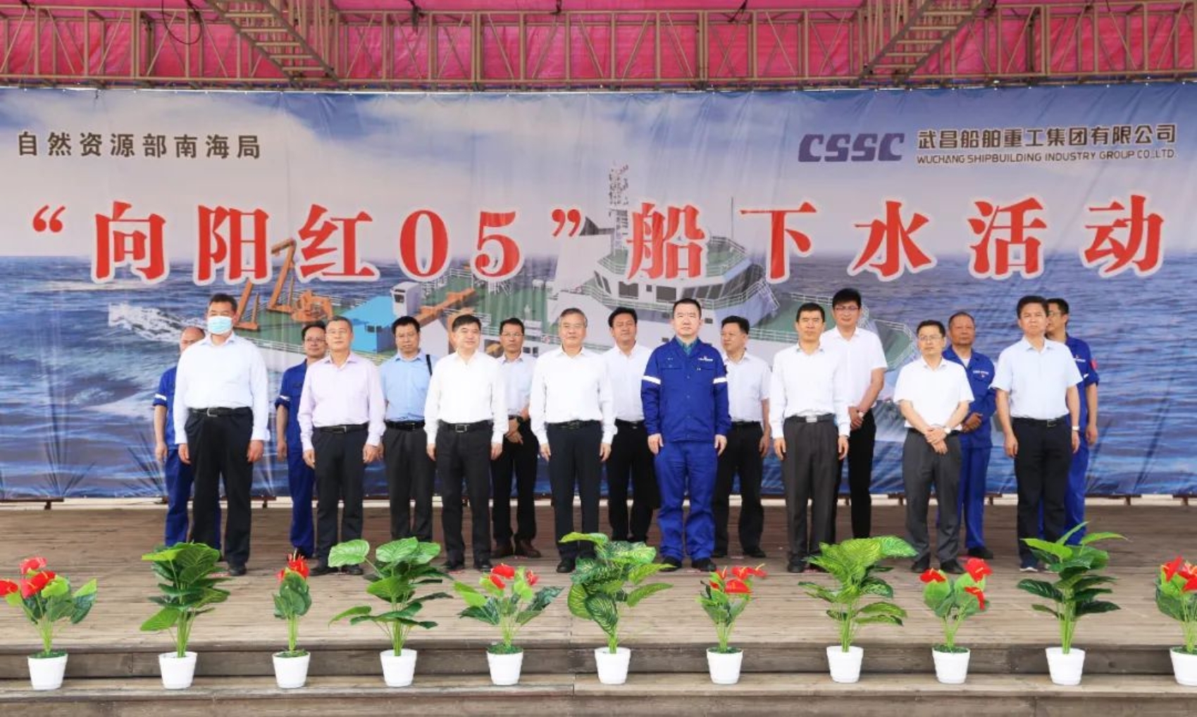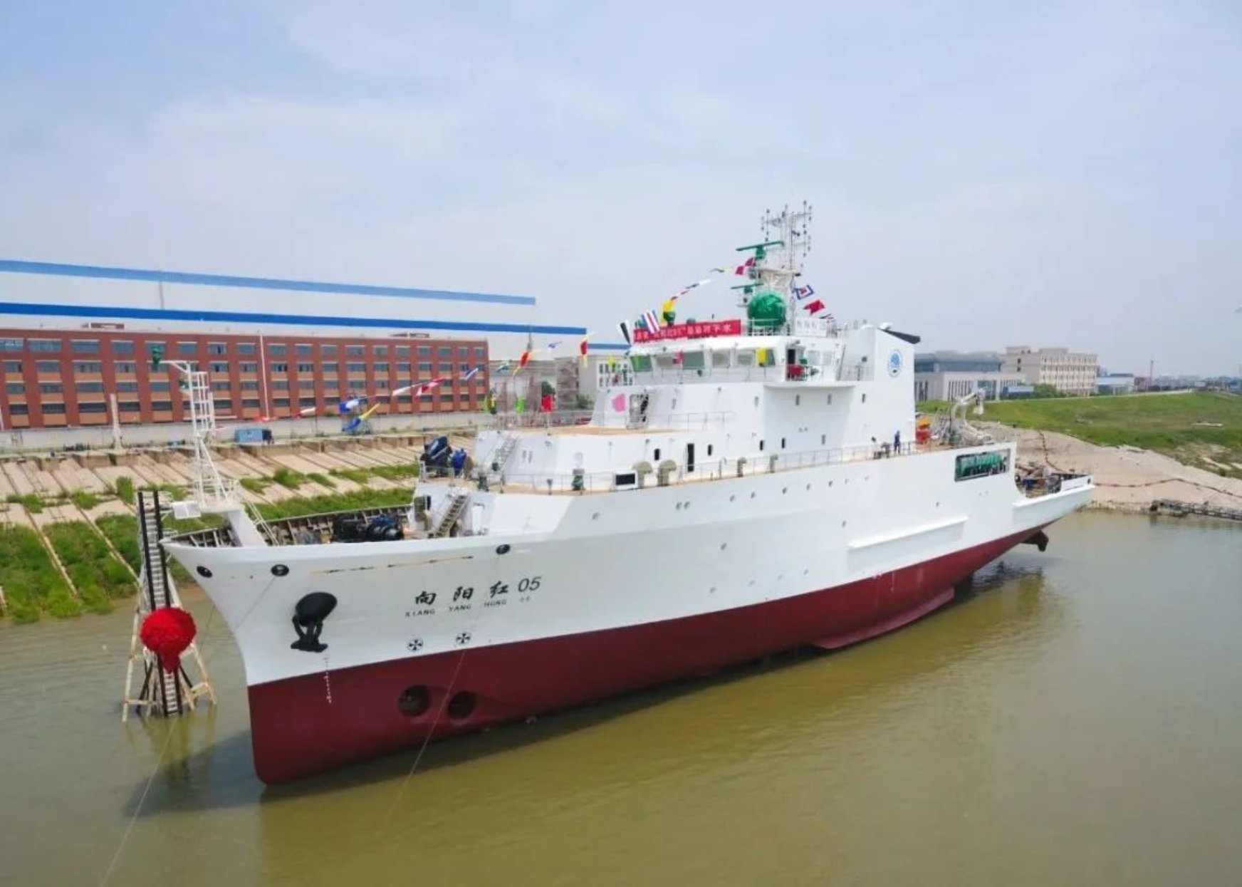 5月19日武昌造船下水滑道,彩旗招展,鑼鼓喧天,鞭炮齊鳴,9點(diǎn)58分,隨著船舶揭幕,擲瓶禮的完成,在眾人的觀禮中,中國船舶集團(tuán)武昌造船為國家海洋局南海調(diào)查中心改造的3000噸級綜合科學(xué)考察船——“向陽紅05”船在雙柳廠區(qū)成功下水!