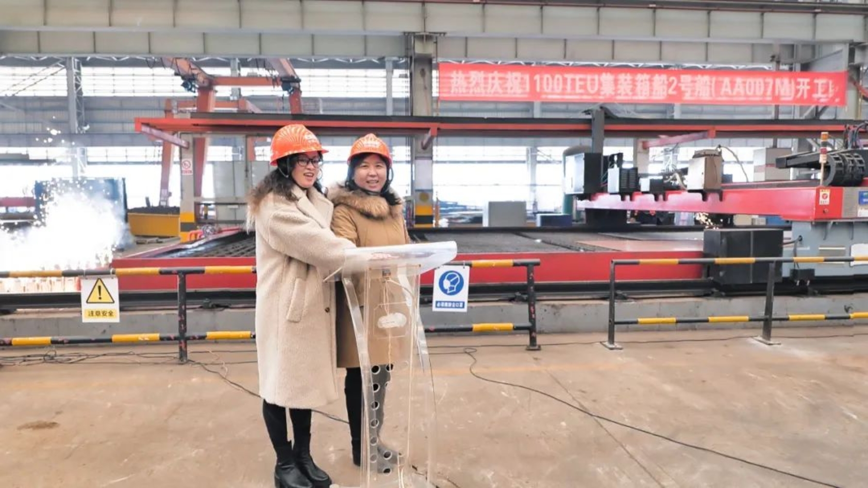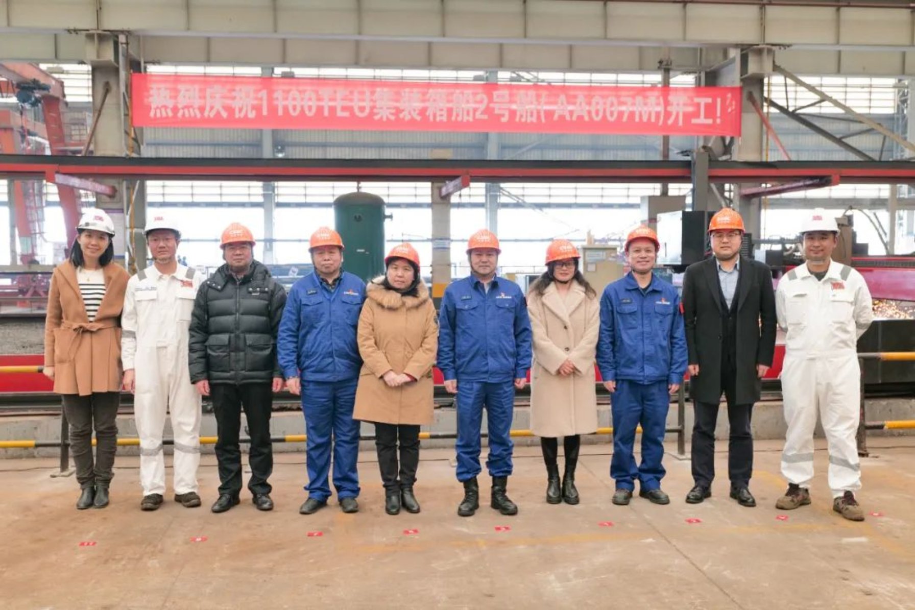 2月14日上午11時18分,中國船舶集團(tuán)武昌造船為CA Shipping建造的1100TEU集裝箱船2號船在雙柳順利開工。