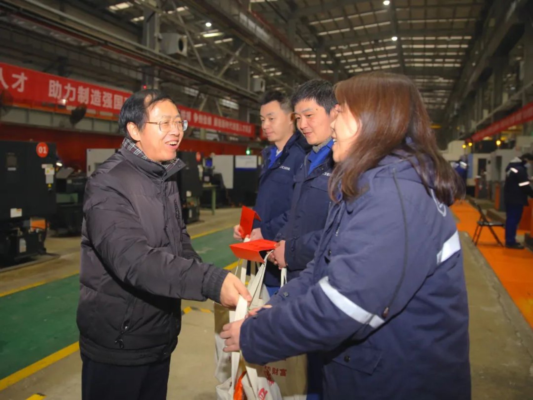 秦少相主席一行在船臺總裝區(qū)、數(shù)控加工區(qū)等生產(chǎn)區(qū)域,親切慰問了公司一線職工代表,送上慰問金和慰問品,詢問了大家的工作及生活狀況,對大家立足崗位、拼搏奮斗,為國防建設(shè)作出的重要貢獻表示感謝,期望大家牢記初心使命,奮勇爭先,為全面推進中華民族偉大復(fù)興作出新的更大貢獻。