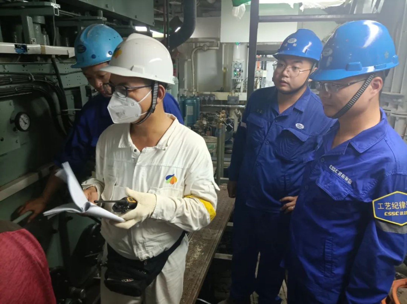 團結(jié)就是力量,團結(jié)更有力量。在“武昌造船一盤棋”的指引下,項目組人員將各項生產(chǎn)、安裝、調(diào)試、試驗工作有序組織、及時完成。設(shè)計管理人員每天到各生產(chǎn)區(qū)域了解生產(chǎn)進度,收集現(xiàn)場問題,各專業(yè)技術(shù)人員現(xiàn)場辦公,7天24小時隨時待命,做到生產(chǎn)需求及時響應,技術(shù)問題馬上解答,調(diào)試工作有人在場,現(xiàn)場問題當天出方案,全力做好各項保障工作。