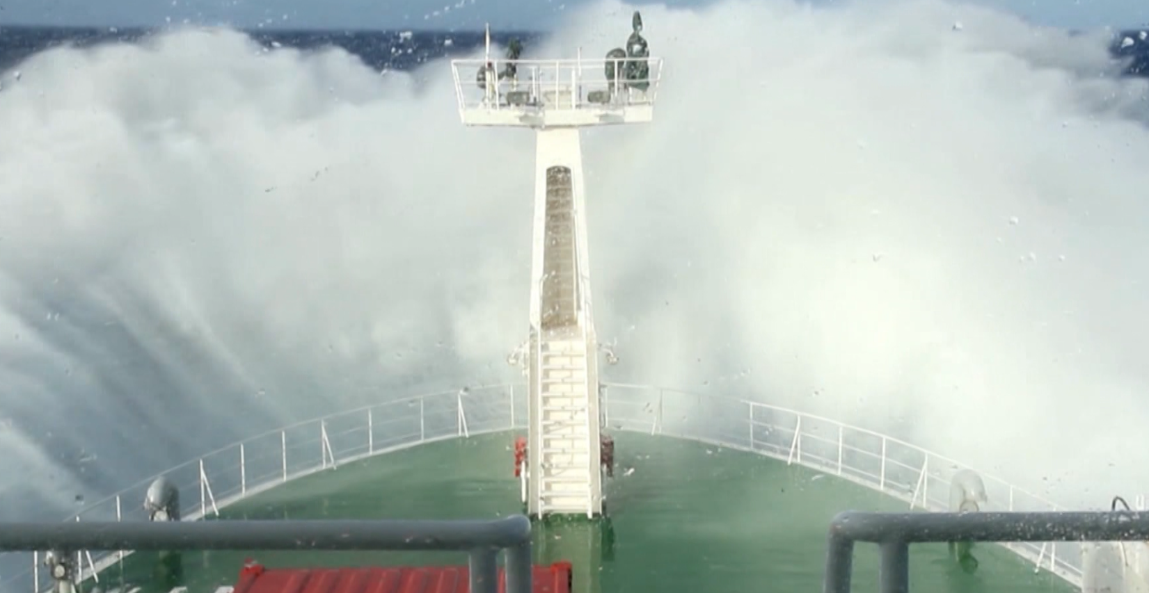 “科學(xué)”號(hào)在大風(fēng)浪中穩(wěn)定航行