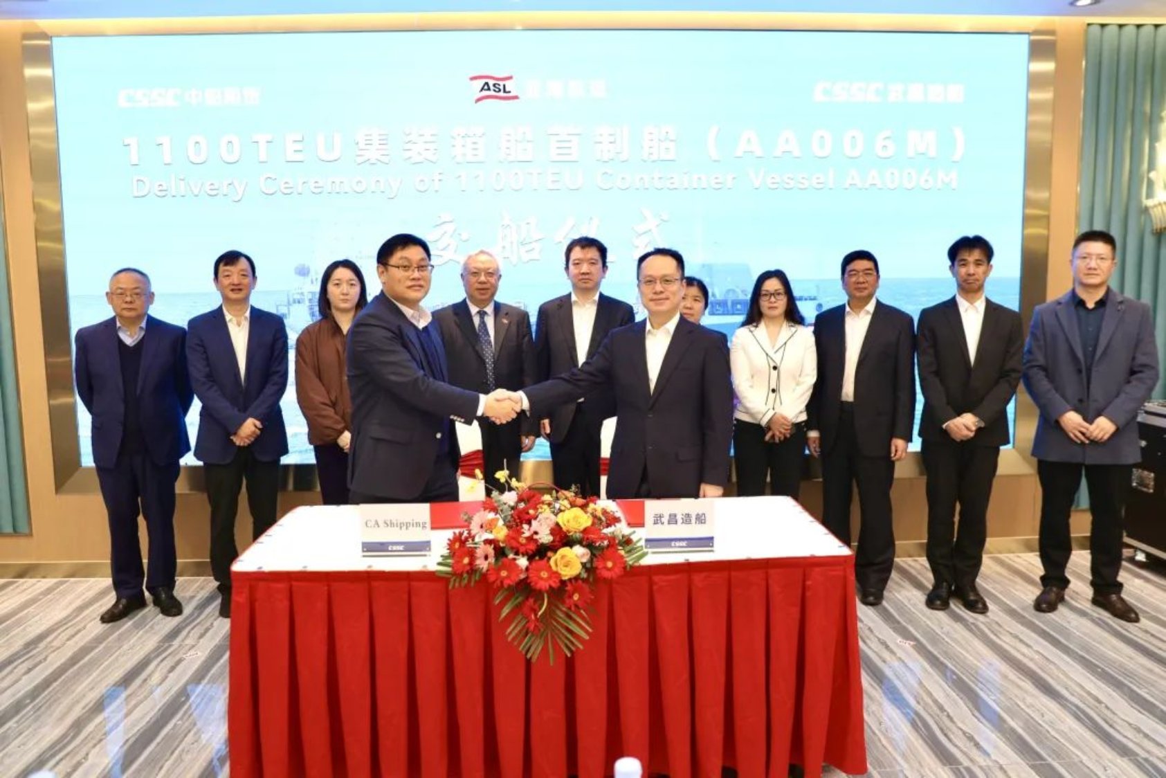 臘月風(fēng)和意已春,1月18日由中國(guó)船舶集團(tuán)武昌造船為CA SHIPPING建造的1100TEU集裝箱船首制船較合同提前成功交付!這是公司繼7200DWT不銹鋼化學(xué)品船3號(hào)、4號(hào)船和“向陽(yáng)紅05”船之后,提前交付的第四艘船,該船的順利交付意味著武昌造船成功實(shí)現(xiàn)新年交付“開(kāi)門紅”,標(biāo)志著公司在商船市場(chǎng)已形成提前交付的良好勢(shì)頭,昂首邁入“以學(xué)促干、價(jià)值創(chuàng)造、精益求精”的新征程。