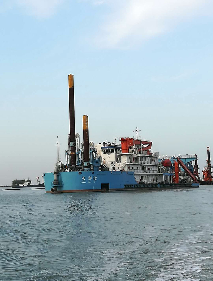 5月17日起,“長(zhǎng)獅12”鋼樁定位系統(tǒng)在江蘇鹽城濱海港多個(gè)水域先后實(shí)現(xiàn)了主輔鋼樁立樁、下樁、定樁、升樁,以及臺(tái)車系統(tǒng)驅(qū)動(dòng)行走試驗(yàn)。試驗(yàn)過(guò)程中,兩根長(zhǎng)達(dá)42米的巨型鋼樁先后順利插入水底約5米深度,將挖泥船牢牢定位在水流湍急的海面上。在臺(tái)車系統(tǒng)和主輔鋼樁聯(lián)動(dòng)作用下,挖泥船實(shí)現(xiàn)了連續(xù)扇形挖泥動(dòng)作。十多天的聯(lián)調(diào)試驗(yàn)過(guò)程中,主輔鋼樁部套同臺(tái)車系統(tǒng)完成了十多次聯(lián)調(diào)試驗(yàn),全部取得成功,充分驗(yàn)證了2000m3/h自航絞吸挖泥船“長(zhǎng)獅12”鋼樁定位系統(tǒng)的功能性、穩(wěn)定性和可靠性,順利通過(guò)長(zhǎng)江航道局報(bào)檢驗(yàn)收。