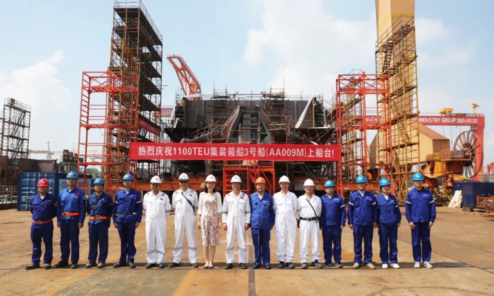 1100TEU集裝箱船3號(hào)船實(shí)現(xiàn)上船臺(tái)節(jié)點(diǎn)