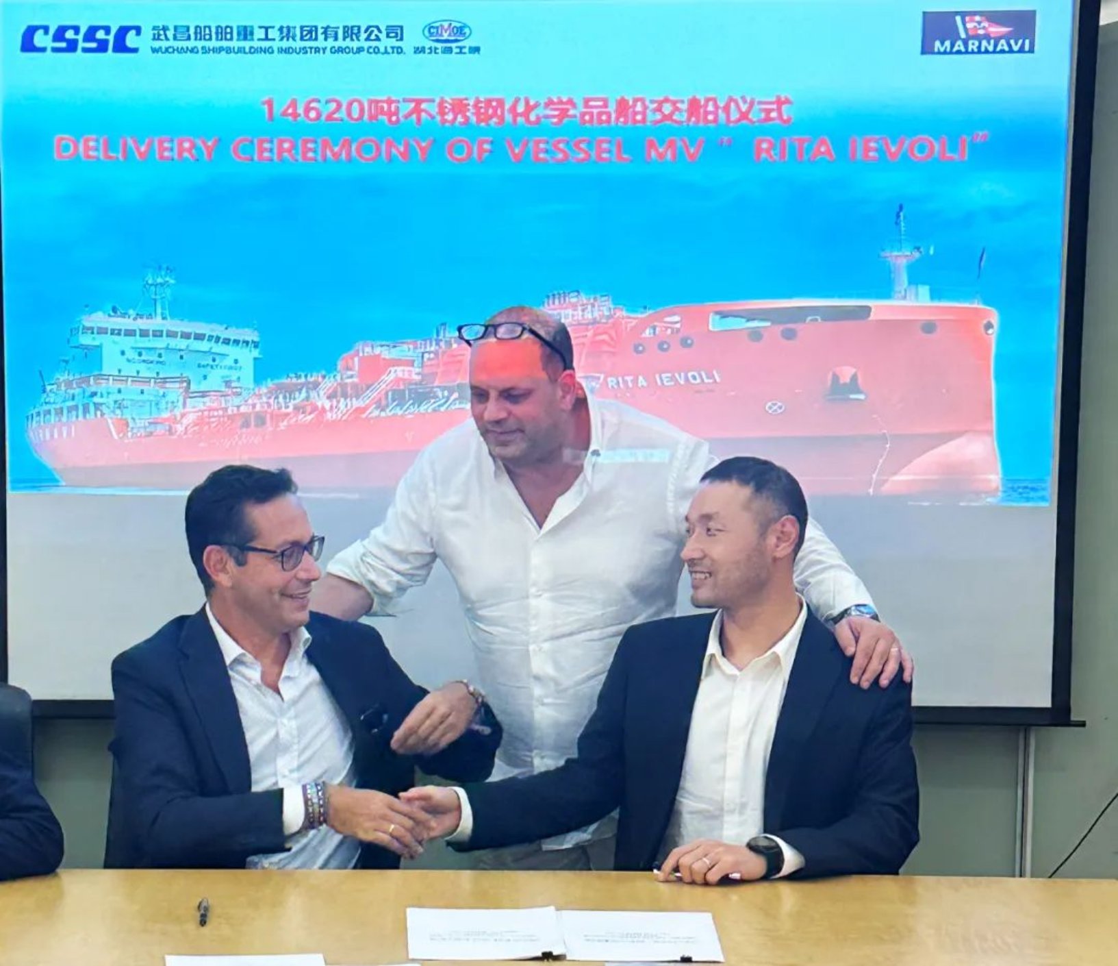 9月15日,武昌造船為意大利船東Marnavi Chem S.r.l建造的14620噸化學(xué)品船正式簽字交付。