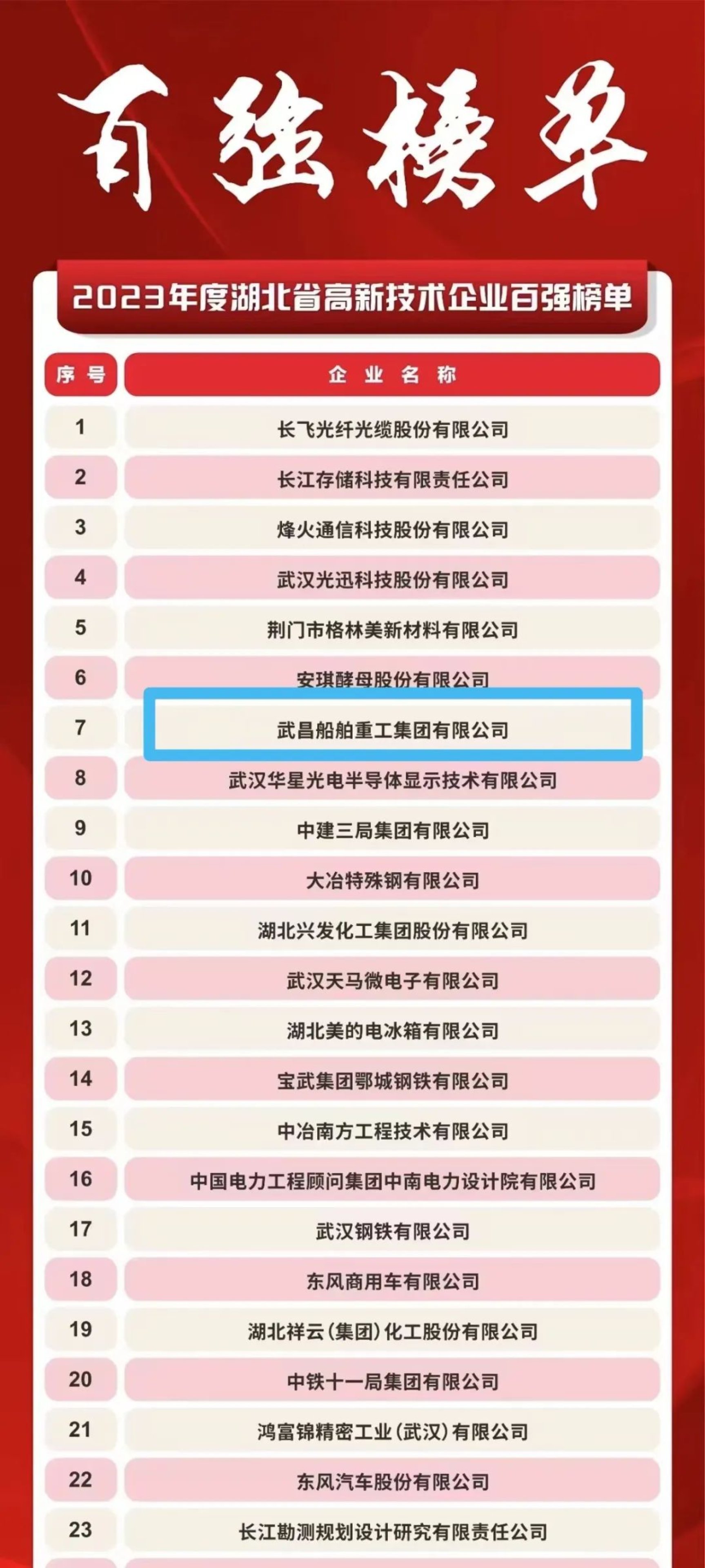 3月7日,湖北省科技廳組織召開了2024年湖北省高新技術(shù)企業(yè)“春曉行動(dòng)”啟動(dòng)會(huì),會(huì)上發(fā)布了湖北省2023年度高新技術(shù)企業(yè)百強(qiáng)名單,中國船舶集團(tuán)武昌造船繼2022年度后再次上榜,且排名從2022年度的第62名上升至第7名。