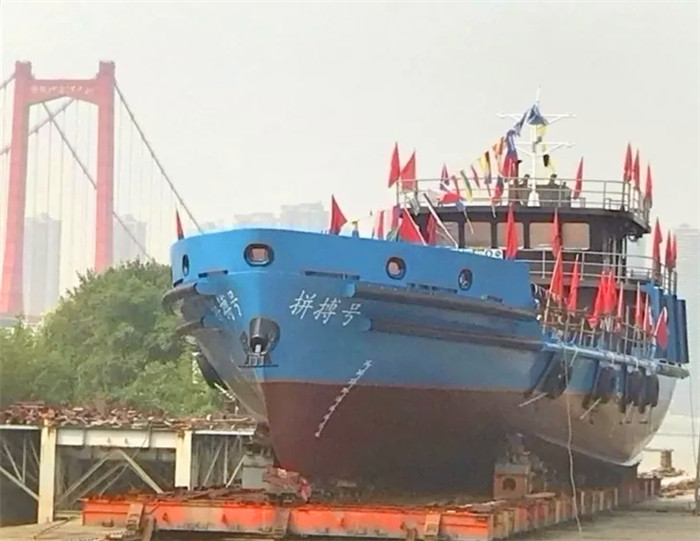 2018年10月18日,由武船集團(tuán)船舶公司承制的500HP碼頭物資轉(zhuǎn)運(yùn)機(jī)動(dòng)船“拼搏號(hào)”順利下水。這標(biāo)志著該船的主體建造工作已圓滿完成,即將進(jìn)入到內(nèi)裝和系統(tǒng)調(diào)試階段。