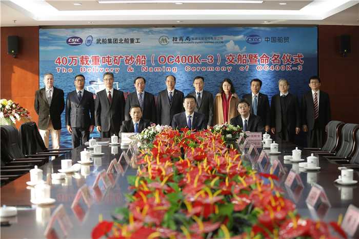 11月23日,武船集團北船重工為招商局能源運輸股份有限公司建造的第三艘新型40萬噸礦砂船“明業(yè)”輪命名交付并拔錨遠航。這是武船集團40萬噸礦砂船系列產(chǎn)品中交付的第5艘船。香港明華船務有限公司總經(jīng)理丁磊,中船重工國際貿(mào)易有限公司船舶貿(mào)易部部長孫勇,武船集團黨委委員、北船重工董事長韓兵作為三方代表共同簽署了交接船議定書。