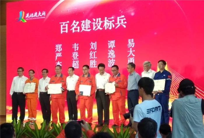 11月12號下午,港珠澳大橋主體工程總結(jié)表彰大會在港珠澳大橋管理局禮堂舉行。大會回顧了港珠澳大橋建設(shè)過程中的各個重要時刻,表彰了工程建設(shè)先進(jìn)個人并現(xiàn)場頒獎。武船重工股份黨委副書記、總經(jīng)理吳躍波,總工程師阮家順,副總經(jīng)理吳濤,和公司員工陳嘉明、王中立、向晉華、易大勇7人分別榮獲了“十大領(lǐng)軍人物”“十大功臣”“十大工匠”“建設(shè)標(biāo)兵”榮譽稱號。