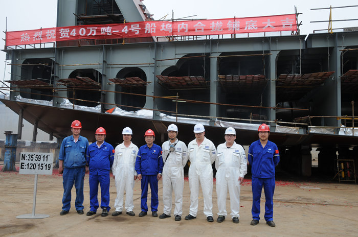 又訊 武船集團(tuán)北船重工承建的40萬載重噸礦砂船4號船于6月5日上午在2號造船塢鋪底。這是第7艘40萬載重噸礦砂船鋪底。