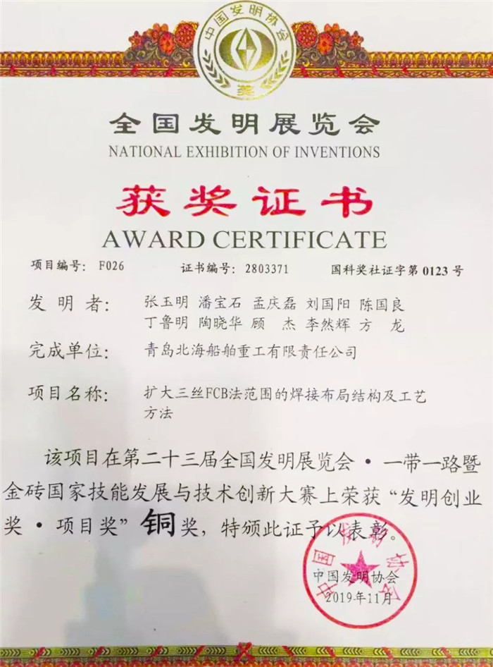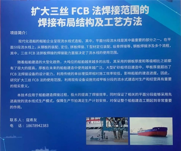 武船集團(tuán)派出由科技部、戰(zhàn)略部、海工院、重裝公司、北船重工組成的6人小組參加集團(tuán)公司展團(tuán),攜海工院的《一種海洋工程基地客貨后勤保障船》、重裝公司的《一種大型螺桿自驅(qū)安裝機(jī)》、北船重工的《擴(kuò)大三絲FCB法焊接范圍的焊接布局結(jié)構(gòu)及工藝方法》三項(xiàng)發(fā)明專利在國(guó)防知識(shí)產(chǎn)權(quán)展區(qū)進(jìn)行了展出。