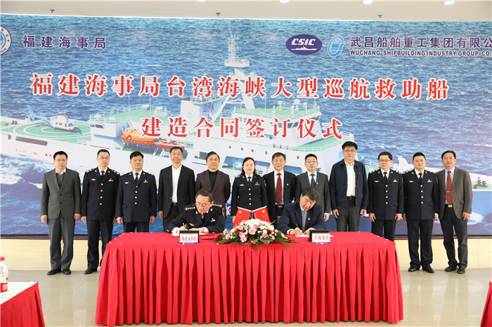 3月26日,武船集團與福建海事局在武船武昌總部簽訂一艘臺灣海峽大型巡航救助船建造合同。