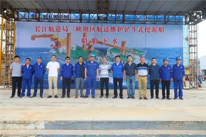 ▲鏟斗式挖泥船下水儀式現(xiàn)場