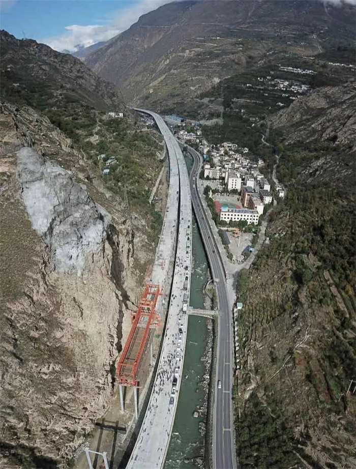 汶川克枯大橋是汶馬高速的控制性工程之一,全長(zhǎng)6.43公里,整橋采用鋼管混凝土組合,其重量?jī)H為混凝土結(jié)構(gòu)的一半,又同時(shí)具有鋼管和混凝土橋梁的優(yōu)點(diǎn)。它的建成,代表著在高烈度地震區(qū)、復(fù)雜地形山區(qū)的高速公路建設(shè)上,找到了一種抗震性能好、經(jīng)濟(jì)適用、工業(yè)化程度高的新橋型。