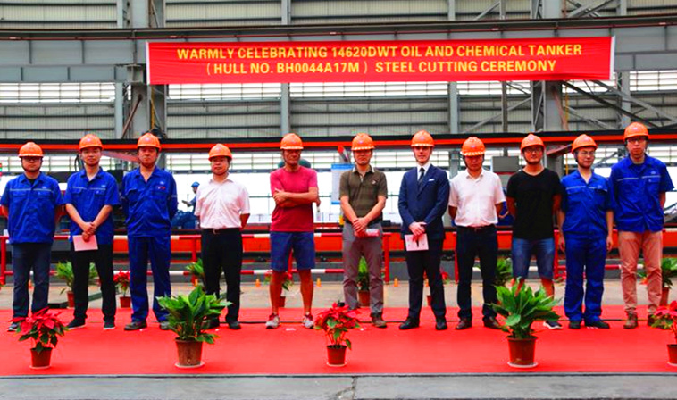 2018年8月27日,武船集團(tuán)海工院為意大利Marnavi船東打造的“14620DWT不銹鋼化學(xué)品船”在雙柳武船基地舉行了1#船的開工儀式,意大利船東代表、意大利船級社中國區(qū)審圖經(jīng)理、武船集團(tuán)代表、海工院代表出席了開工儀式。
