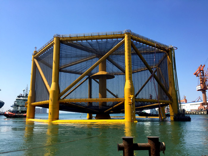 該深海漁場(chǎng)船東為日照萬(wàn)澤豐漁業(yè)公司,預(yù)定作業(yè)海域位于山東省日照市以東130海里的黃海冷水團(tuán)海域,距青島約110海里。拖航需要大約20個(gè)小時(shí)?!吧钏{(lán)一號(hào)”到達(dá)作業(yè)海域后將進(jìn)行升降試驗(yàn)和各項(xiàng)調(diào)試工作。海工院設(shè)計(jì)人員隨船一同出海并將在投入使用前持續(xù)提供現(xiàn)場(chǎng)技術(shù)支持。預(yù)計(jì)本月內(nèi)即可開(kāi)始三文魚(yú)養(yǎng)殖作業(yè)。