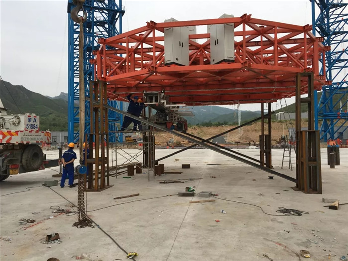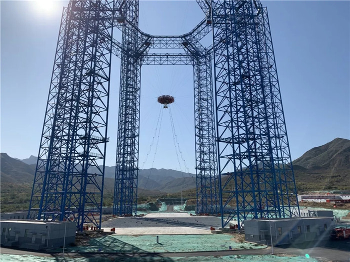 2019年6月,試驗(yàn)場6個(gè)鋼結(jié)構(gòu)塔架拔地而起,與之相匹配的共18套絞車設(shè)備、36根鋼絲和700余組(高空500余組、近地200余組)導(dǎo)向輪,以及相關(guān)配套電纜、電氣設(shè)備設(shè)施的安裝工作接近尾聲,待“隨動(dòng)盤”運(yùn)到,便可以開始進(jìn)行總裝和調(diào)試工作。