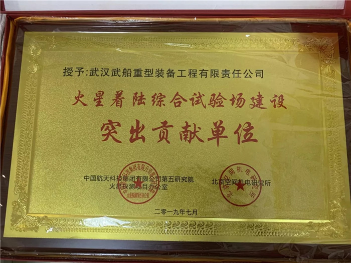 ▲武船集團(tuán)重裝公司榮獲“火星著陸綜合試驗(yàn)場建設(shè)突出貢獻(xiàn)單位”
