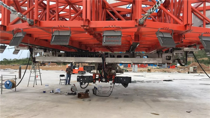 2019年7月初,“隨動(dòng)盤”在武船集團(tuán)重裝公司廟山基地順利完成組裝及檢測實(shí)驗(yàn),并立即拆分裝箱發(fā)往懷來。“隨動(dòng)盤”上安裝的導(dǎo)軌平面度公差達(dá)到0.1mm、平行度公差達(dá)到0.15mm ,各項(xiàng)檢測數(shù)據(jù)滿足工藝精度及試驗(yàn)要求。