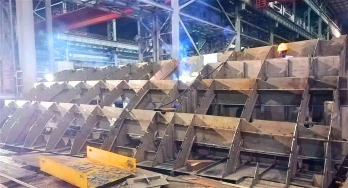 該首制分段為單殼體底部分段,結(jié)構(gòu)形式與往期產(chǎn)品相比變化較大,且工藝復(fù)雜。另外,本次施工屬異地作戰(zhàn),無論在資源調(diào)配還是與相關(guān)方的溝通協(xié)調(diào)等方面都存在不小的難度,而這些都是擺在項(xiàng)目部面前的巨大考驗(yàn)。為應(yīng)對(duì)上述工作難題,項(xiàng)目部高度重視,決心不惜一切代價(jià)也要按期、保質(zhì)完成生產(chǎn)任務(wù)。在項(xiàng)目部總指揮凌偉、副總指揮李強(qiáng)的統(tǒng)一領(lǐng)導(dǎo)下,項(xiàng)目部迅速加大了人力、物力及各項(xiàng)設(shè)備設(shè)施的投入力度,通過不斷優(yōu)化細(xì)化生產(chǎn)組織,制定科學(xué)有效的日生產(chǎn)計(jì)劃并狠抓計(jì)劃的落實(shí),不斷加強(qiáng)對(duì)現(xiàn)場(chǎng)的溝通和協(xié)調(diào)等舉措,有效解決了工作中存在的諸多困難,打通了生產(chǎn)瓶頸,達(dá)到了“日事日畢、日清日高”的效果。