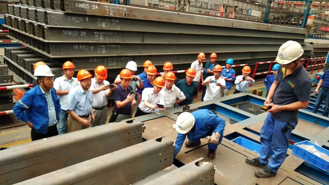 與會專家和領(lǐng)導(dǎo)查看了面板單元件生產(chǎn)現(xiàn)場和產(chǎn)品質(zhì)量狀況,聽取了《棋盤洲鋼箱梁制造加工焊接工藝評定》、《首制件面板單元件施工總結(jié)》和《面板U肋焊縫質(zhì)量檢測與驗收標(biāo)準(zhǔn)》的匯報,審閱了相關(guān)技術(shù)文件和檢測資料,經(jīng)討論認(rèn)為,武船重工股份提供的技術(shù)資料齊全,檢測數(shù)據(jù)可信,符合評審要求。面板單元件制造施工準(zhǔn)備充分,質(zhì)量保證體系完整,工藝裝備安全可靠,工藝方案可行,在科學(xué)管理和技術(shù)創(chuàng)新方面做了積極探索,面板單元件制造滿足設(shè)計及相關(guān)規(guī)范要求。大橋施工質(zhì)量得到與會專家和領(lǐng)導(dǎo)們的一致認(rèn)可和高度評價,可進(jìn)行后續(xù)面板單元件批量生產(chǎn)制造。