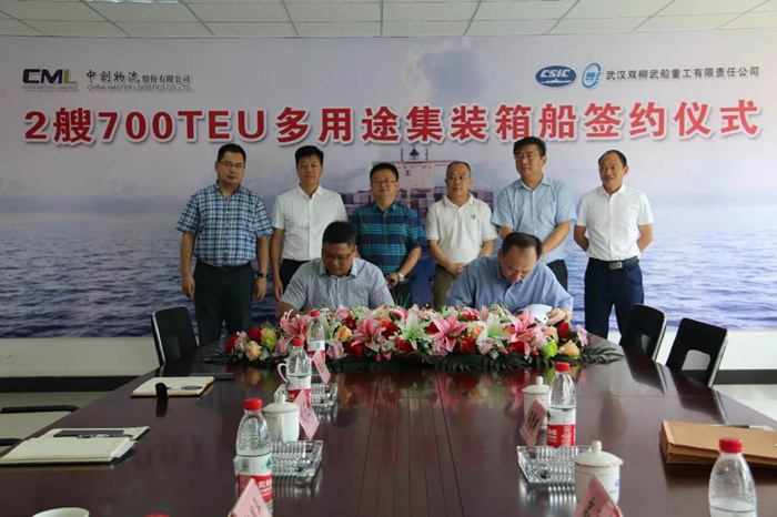 7月18日10時(shí)18分,武船集團(tuán)雙柳武船和中創(chuàng)物流股份有限公司“2艘700TEU多用途集裝箱船簽約儀式”在雙柳武船基地圓滿舉行。中創(chuàng)物流青島遠(yuǎn)大均勝海運(yùn)有限公司董事長高兵、雙柳武船黨委書記楊國平代表雙方在合約書上簽字,雙方公司主要領(lǐng)導(dǎo)參加了簽約儀式。