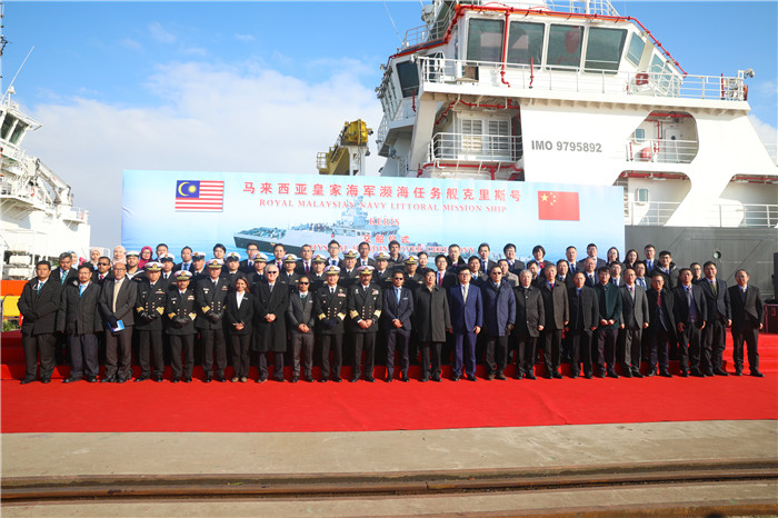 12月31日,中國(guó)船舶集團(tuán)有限公司所屬武昌船舶重工集團(tuán)有限公司為馬來(lái)西亞海軍建造的瀕海任務(wù)艦首艦在中國(guó)船舶武船集團(tuán)江蘇啟東基地交付。