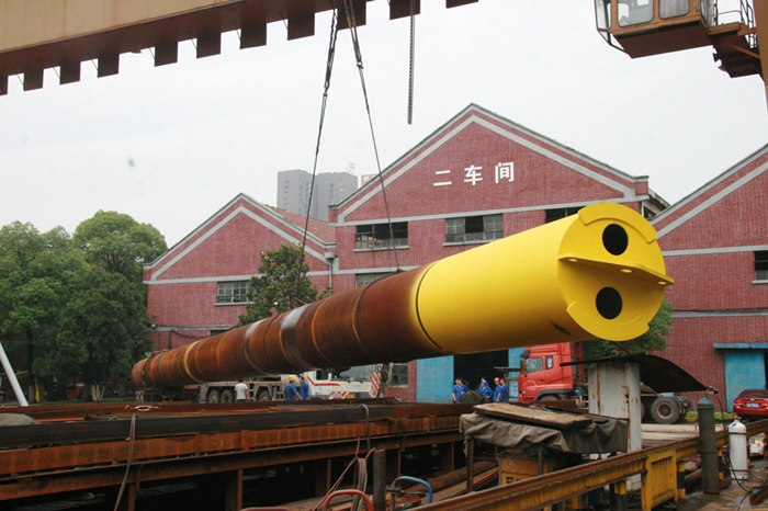 一是鋼樁建造精度高,直徑1.6米、長(zhǎng)42米、重達(dá)80噸的鋼樁,豎立高度超過(guò)了15層樓房,體量超過(guò)了50輛普通小轎車,武船集團(tuán)項(xiàng)目人員卻將這個(gè)龐然大物的直線度控制在了3個(gè)毫米以內(nèi),相當(dāng)于每一米長(zhǎng)度上的直線度誤差僅有一根頭發(fā)絲直徑大小,保證鋼樁順利插入水底。