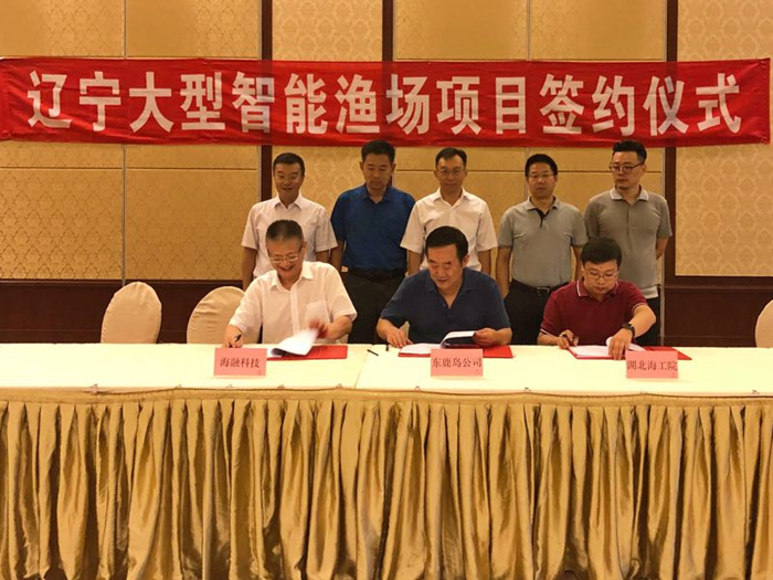 2018年8月24日,武船集團(tuán)旗下的湖北海洋工程裝備研究院有限公司和中船重工海融裝備(海南)有限公司與大連東鹿島海洋科技有限公司在遼寧省大連市簽訂了《遼寧冷水團(tuán)超大型智能漁場(chǎng)項(xiàng)目裝備研制合作協(xié)議》,中船重工經(jīng)濟(jì)運(yùn)行部主任于逢平、副主任羊維瓚、資產(chǎn)部副主任李嘉華見證了簽約儀式。