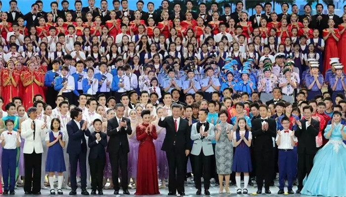 ▲2017年6月30日晚,習(xí)近平主席在香港會(huì)展中心同全場(chǎng)一起高唱《歌唱祖國》新華社記者馬占成攝