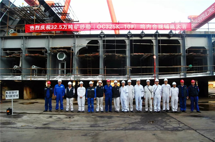 ▲32.5萬噸礦砂船10號船鋪底儀式現(xiàn)場