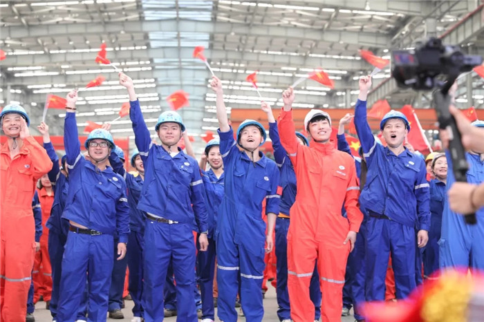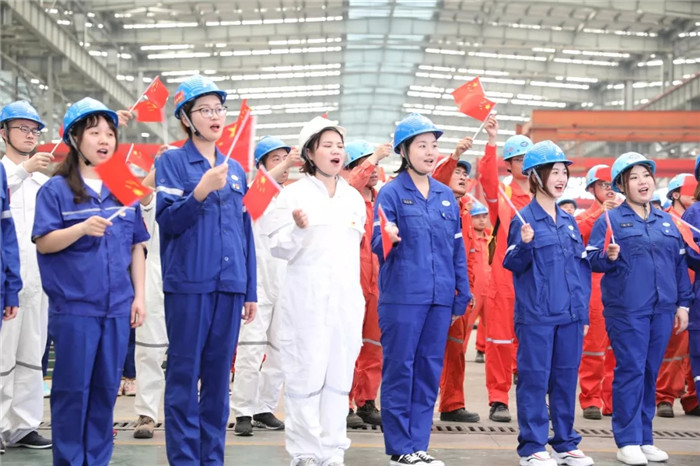 ▲武船集團(tuán)歌頌祖國(guó)快閃活動(dòng)《我和我的祖國(guó)》