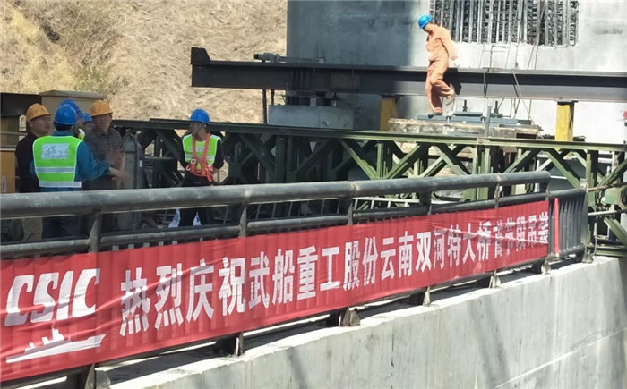 2019年4月18日,由武船重工股份承建的云南雙河特大橋首片鋼梁節(jié)段吊裝成功。云南雙河特大橋是格巧高速公路的重要組成部分。格巧高速公路是昆明至巧家高速公路與四川省寧南縣連接的關(guān)鍵線路,是川滇渝快速新通道的重要組成部分,建成通車后,將帶動(dòng)昭通經(jīng)濟(jì)跨越式發(fā)展,大幅提高云南入川通道的通行能力,對(duì)加強(qiáng)川滇渝經(jīng)濟(jì)合作,推動(dòng)長(zhǎng)江經(jīng)濟(jì)帶經(jīng)濟(jì)發(fā)展,促進(jìn)沿線革命老區(qū)的發(fā)展建設(shè)具有重要的意義。
