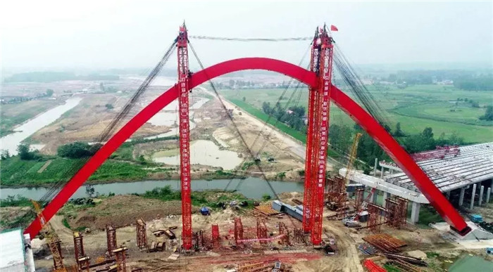 2019年6月22日,由武船重裝公司承建的濟(jì)祁高速三覺(jué)互通連接線新橋大橋單跨鋼箱拱合攏。