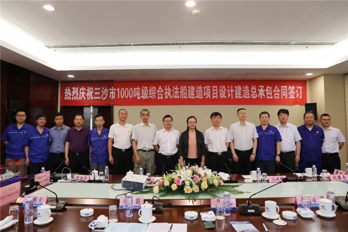 2019年6月21日,武船集團(tuán)與三沙市海洋綜合行政執(zhí)法局在武船雙柳基地簽訂1000噸級(jí)綜合執(zhí)法船建造合同。該船建成后,將執(zhí)行三沙市管轄海域內(nèi)巡邏、監(jiān)管等重要任務(wù),擔(dān)負(fù)起維護(hù)國(guó)家海洋權(quán)益的重大使命。