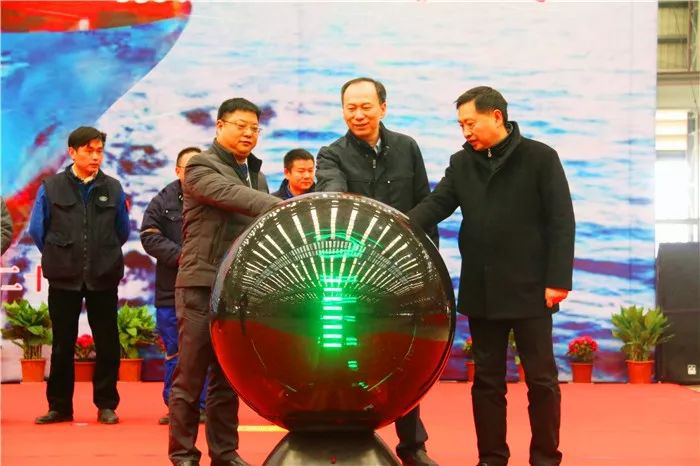 ▲各方共同為700TEU開工點火,按啟動球