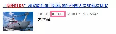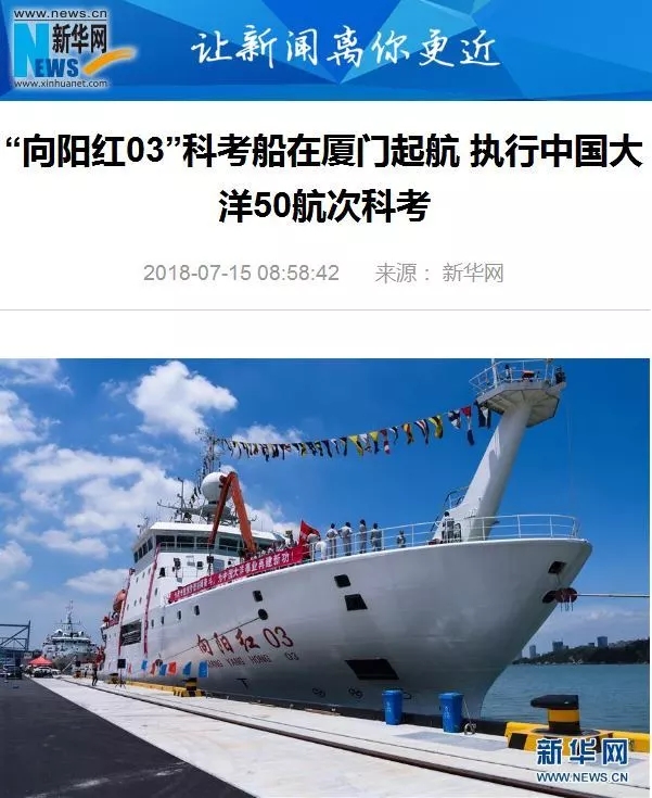 各大媒體紛紛報(bào)道的正是“向陽(yáng)紅03”船出發(fā)的消息?C?C7月14日,搭載著中國(guó)大洋50航次科考隊(duì)的“向陽(yáng)紅03”船從廈門起航。
