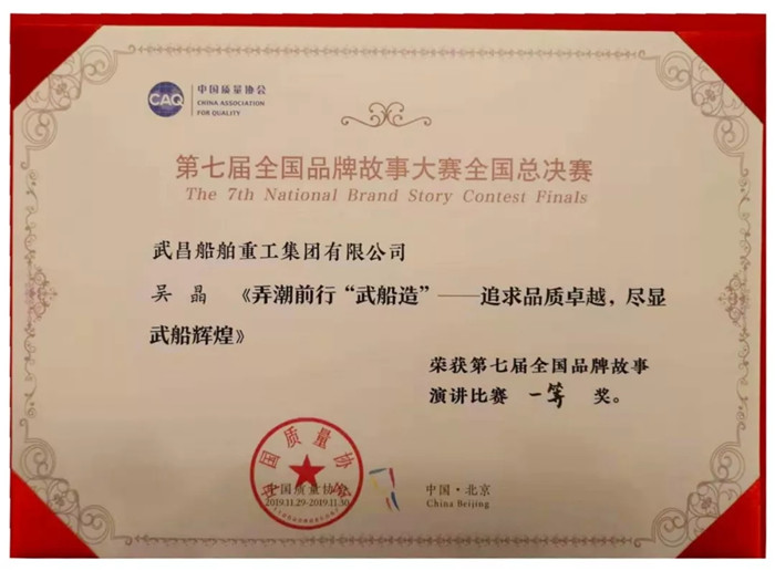 ▲吳晶《弄潮前行“武船造”?C?C追求品質(zhì)卓越,盡顯武船輝煌》榮獲第七屆全國(guó)品牌故事大賽演講比賽一等獎(jiǎng)